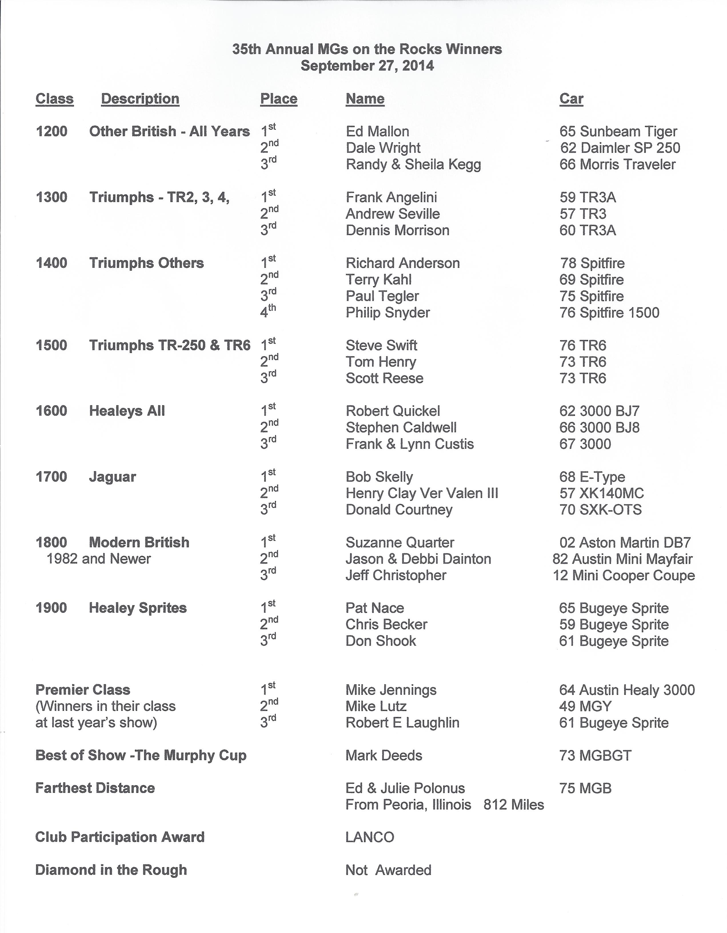 46th Annual “MGs On The Rocks” Winners List – 2025